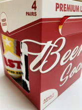 4 tasty pairs of beer socks in a 'grab and go' style beer box.