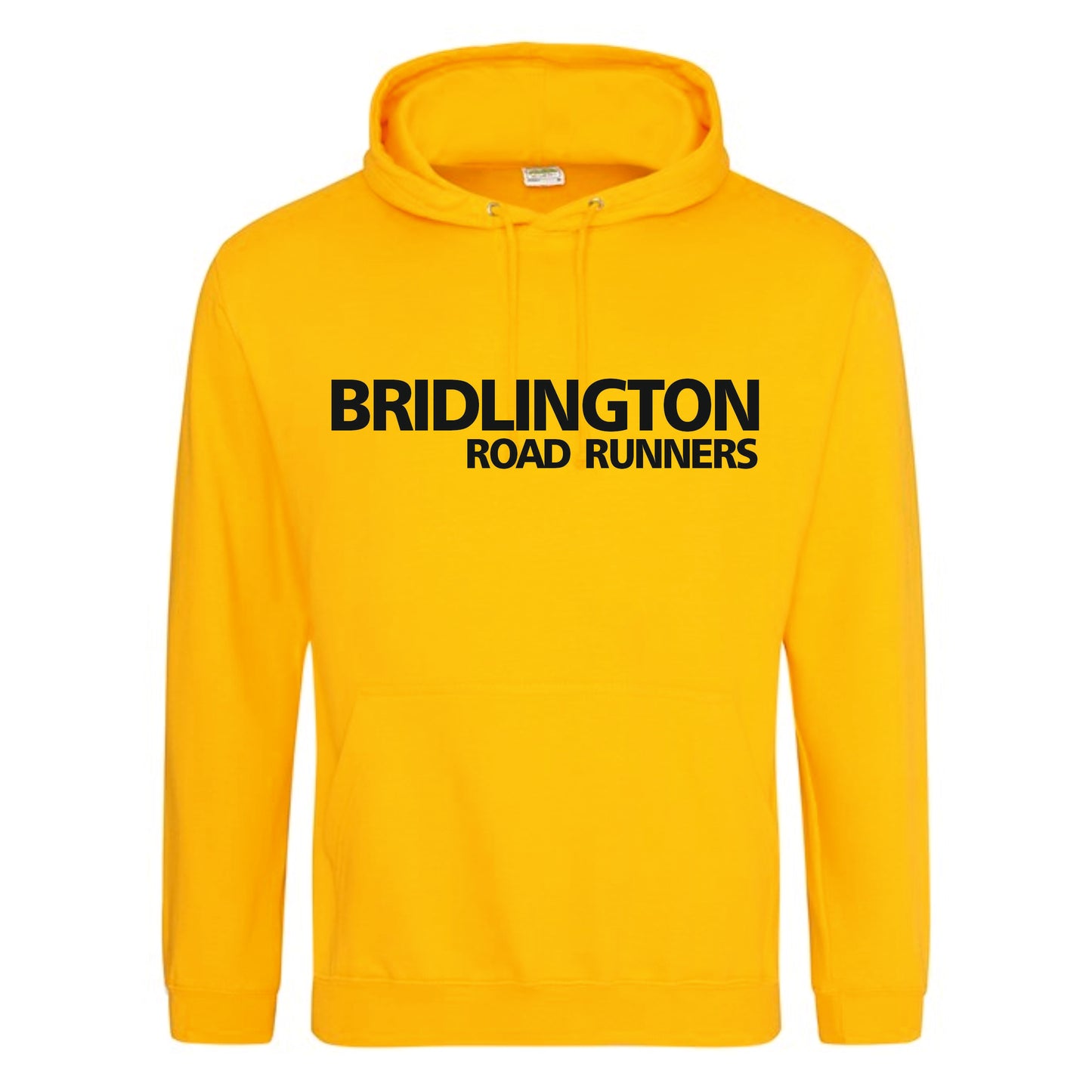 Yellow pull over hoodie with Bridlington Road Runners printed on the front and the logo printed on to the back. This hoodie has a silicone sports print. There is a option to add your name to the bottom of the logo on the back.
