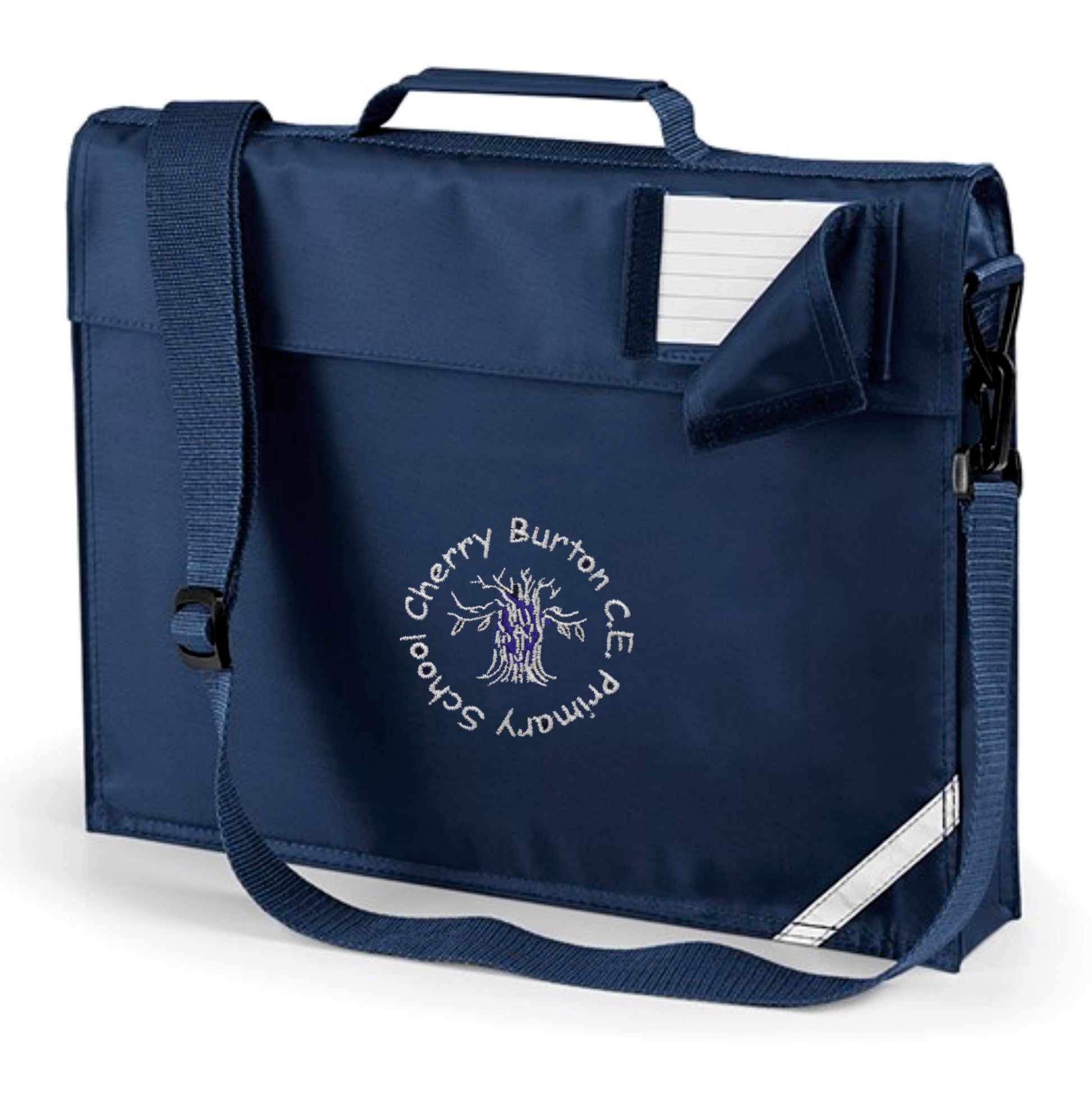 Cherry Burton Primary School bookbag with strap and embroidered logo.