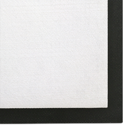 Our doormat's are rubber backed with a white printable area that ends roughly 20mm before the edge, leaving a black rubber border.