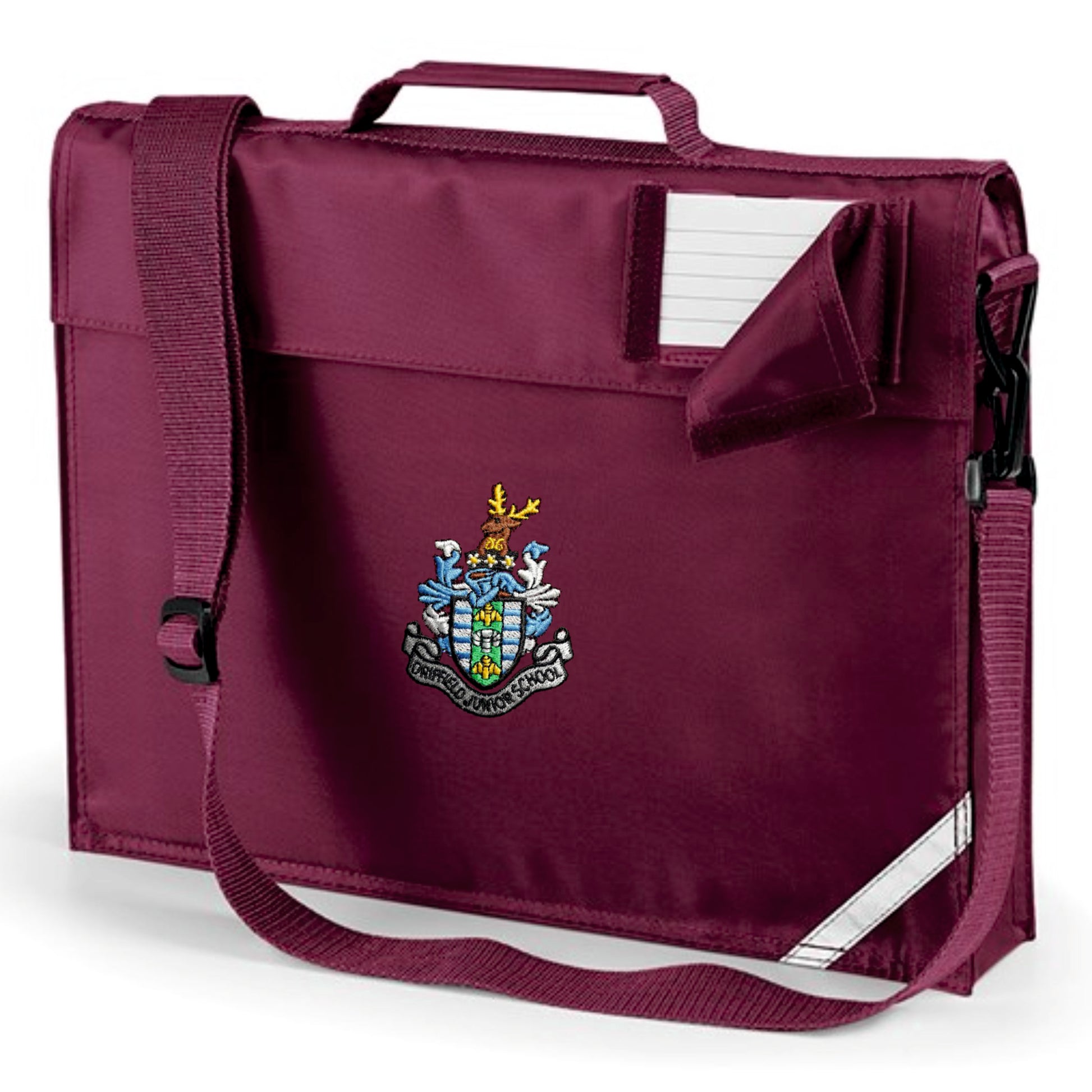 Driffield Junior School bookbag with strap and embroidered logo.