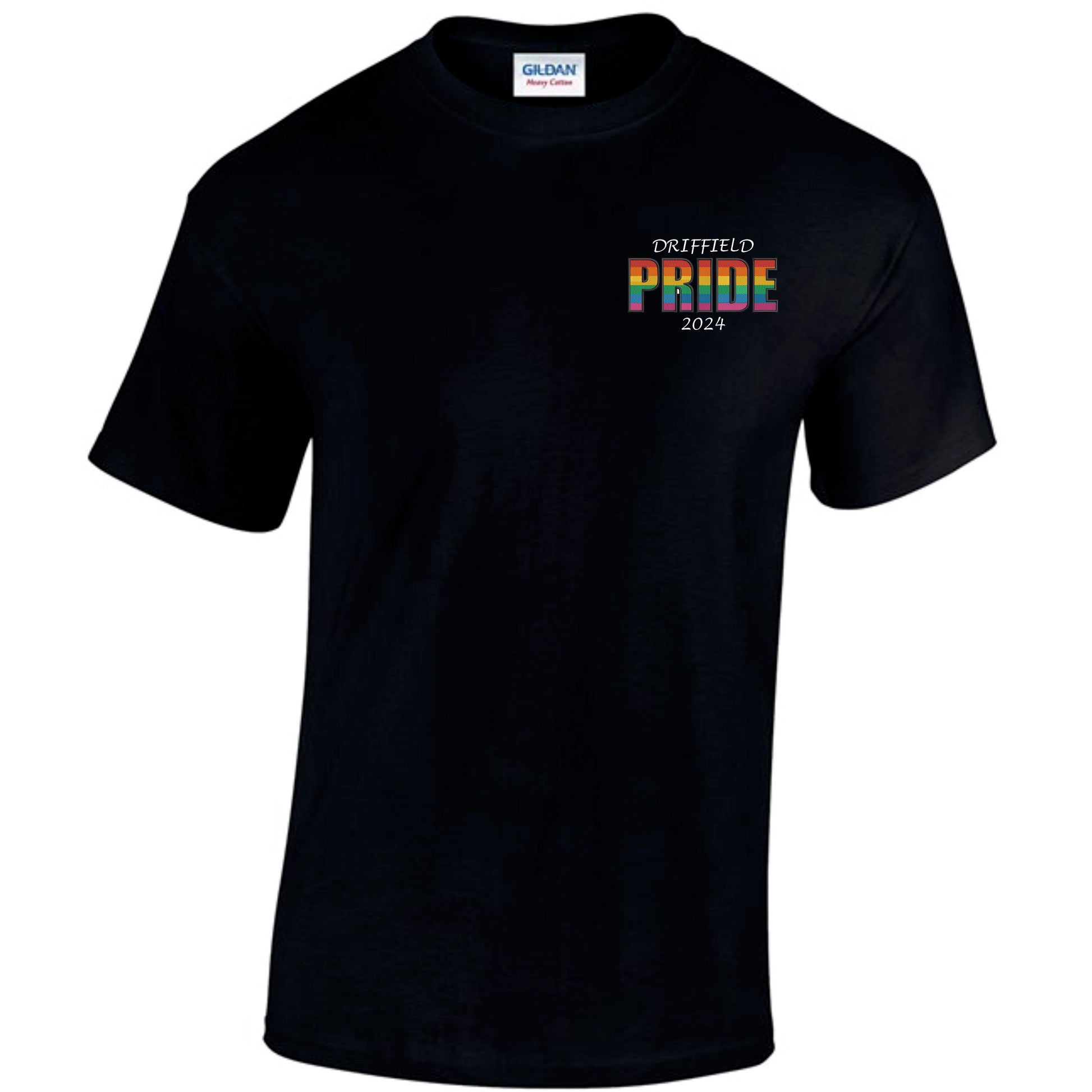 Official Driffield Pride adults T-Shirt, embroidered with Driffield Pride 2024 design on the left breast.