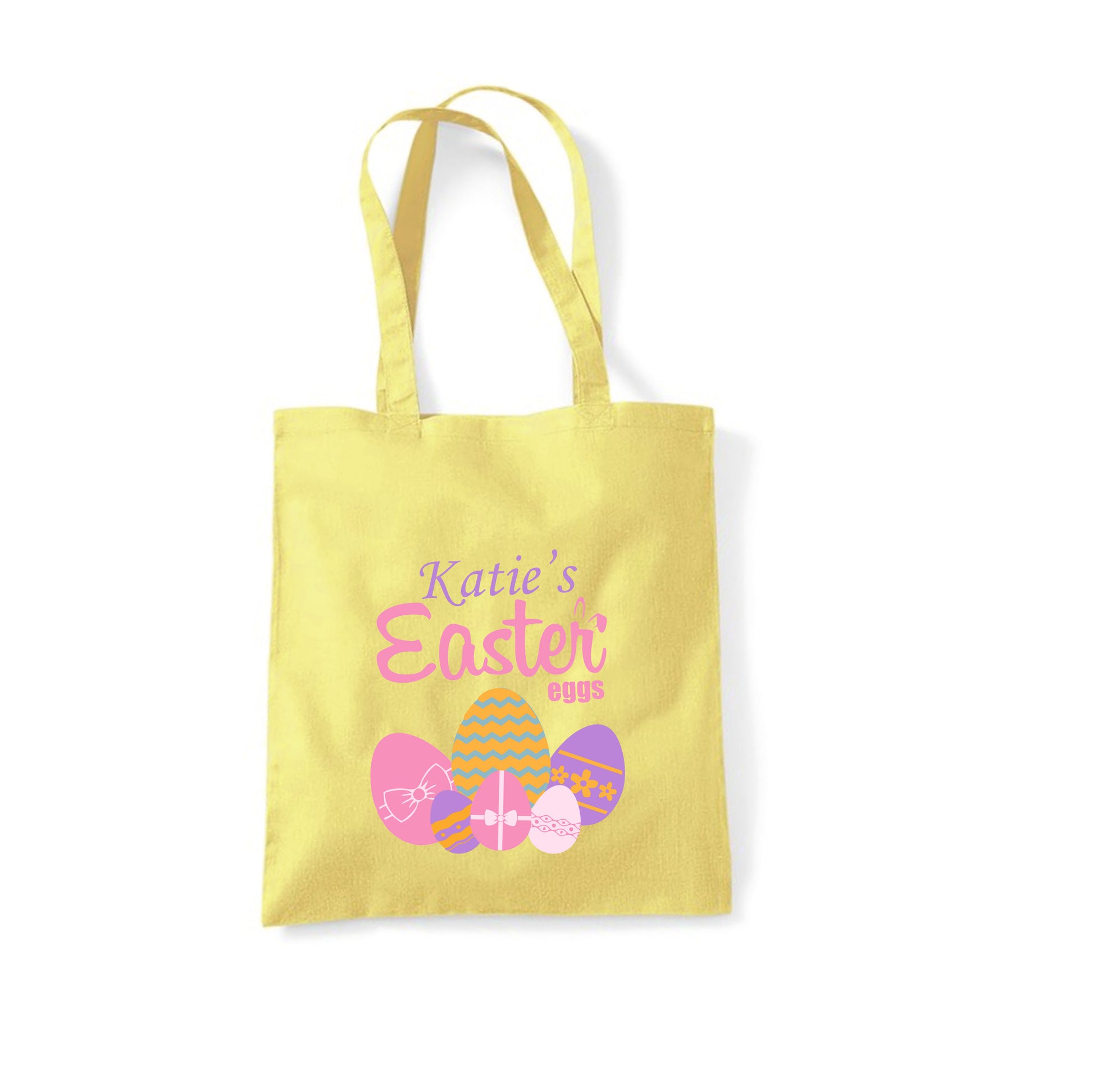 Go egg hunting in style with this bright and colorful bag. Choose between two sizes, a range of different spring colours, this design can also be personalised.