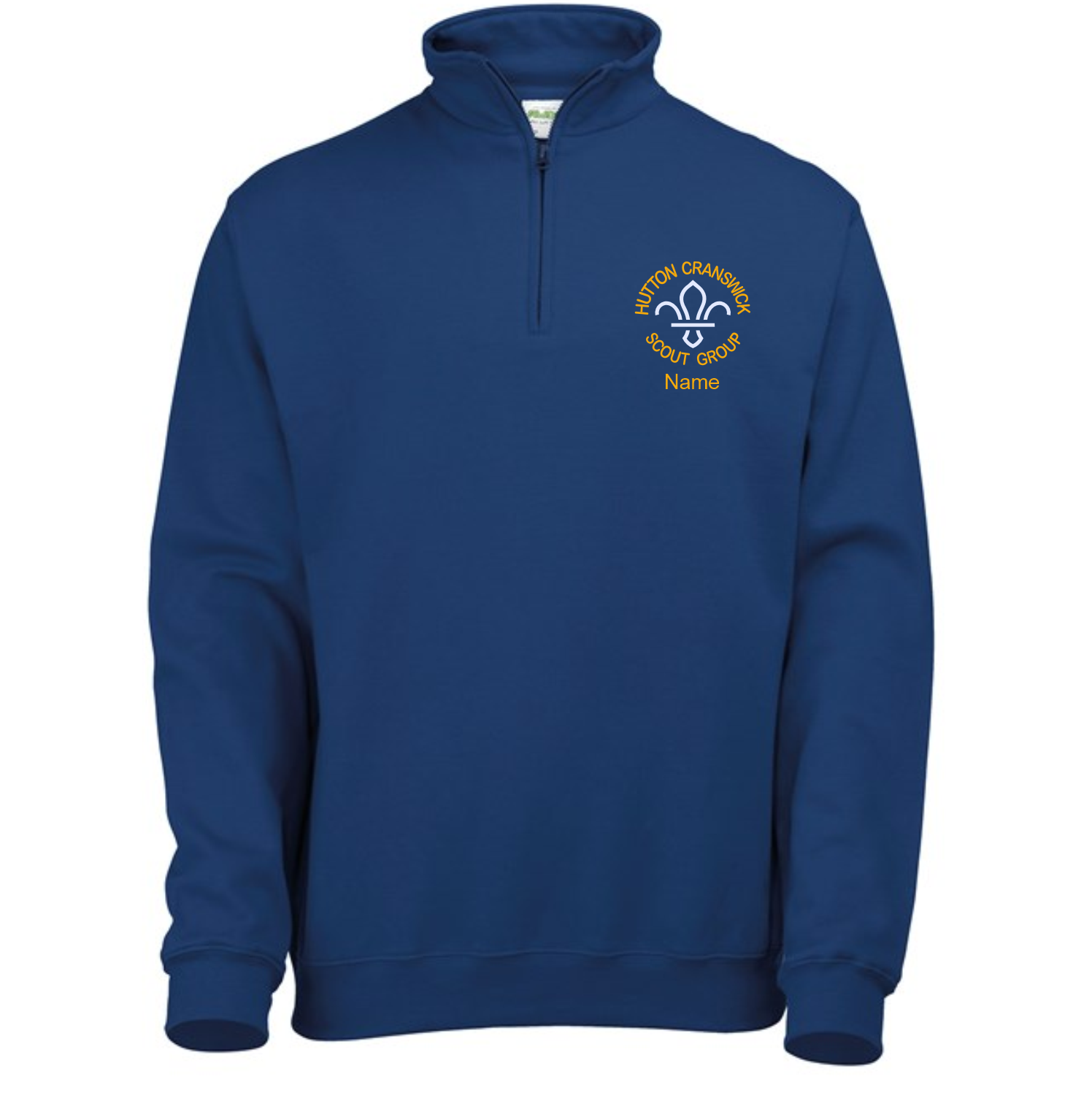 Adults 1/4 zip sweatshirt comes with the Hutton Cranswick Scouts embroidered on the left breast. You also have the option to have your name embroidered underneath the logo.