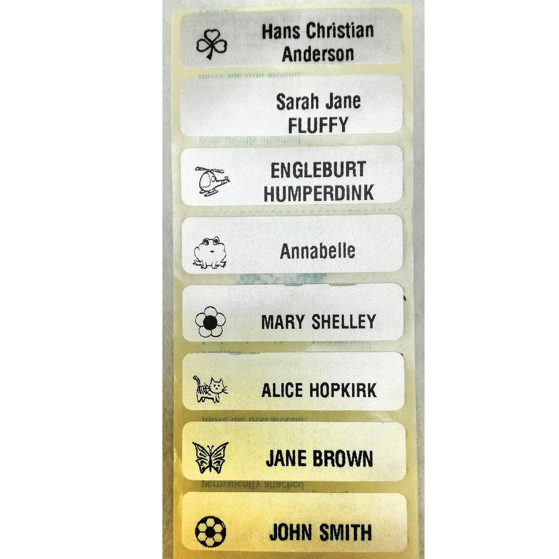Iron on clothing labels