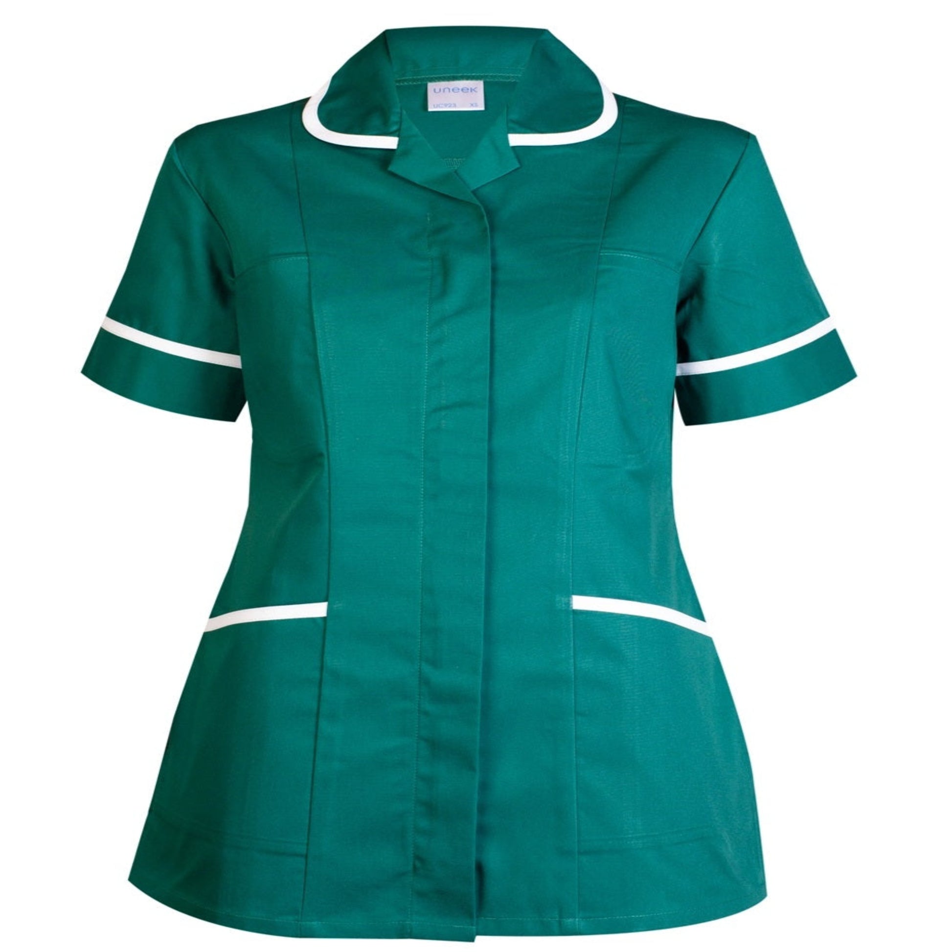 - Contrast Trim to Collar, Cuffs, and Pockets