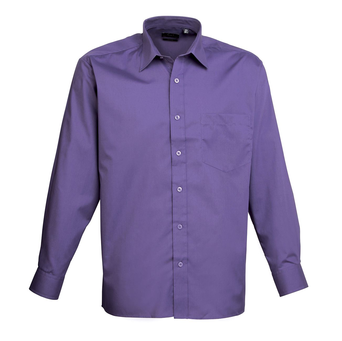 A men’s long sleeved classic fit Poplin shirt available in 27 colours from the Premier 'Colours Collection.' This classic work shirt has a stiffened formal cut collar which accommodates a ties perfectly. The left breast pocket and self-fabric buttons down the placket and cuffs makes for a smart and stylish everyday, easy care shirt.