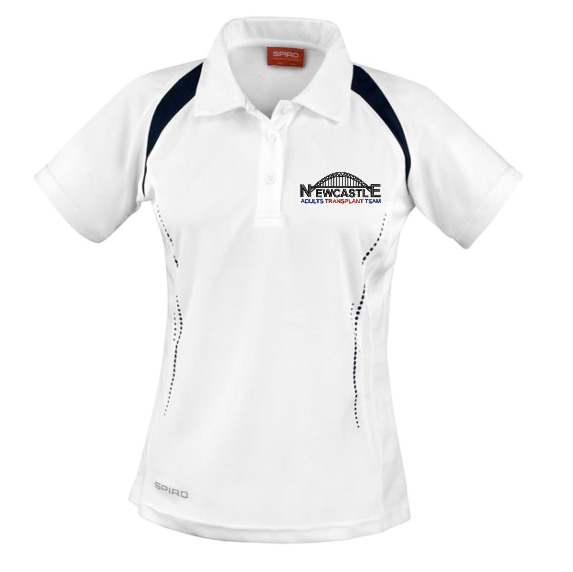 This performance lightweight sport polo with breathable contour panels comes with the Newcastle Transplant Team logo embroidered on the left breast. These polos also come with sponsors printed onto the back. It is available in both ladies and unisex fit.