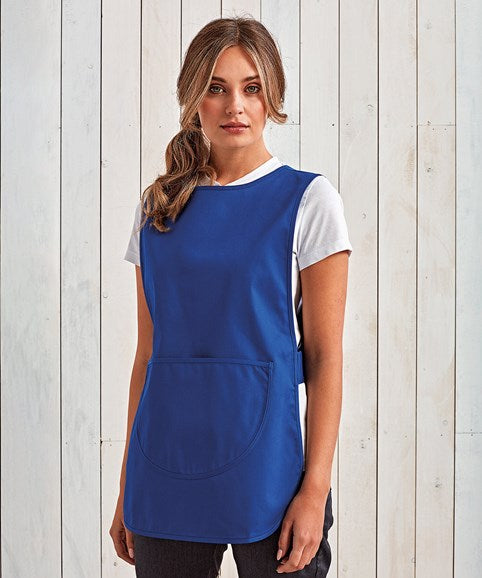 A traditional over-the-head tabard available in vibrant colours. This tabard fastens securely at the side with adjustable studs and offers great protection against spillages. In the centre is a large patch pocket with a bias trim edge, useful for carrying accessories.