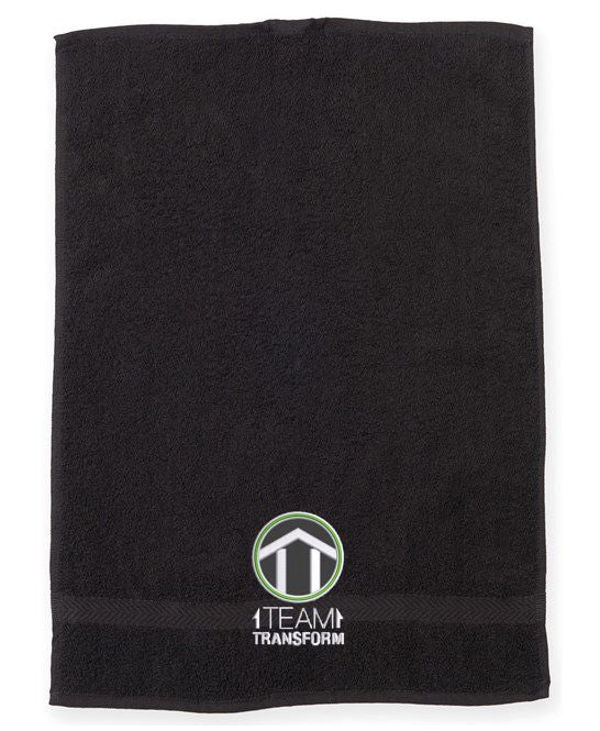Team Transform gym towel with the logo embroidered onto the bottom of the towel.
