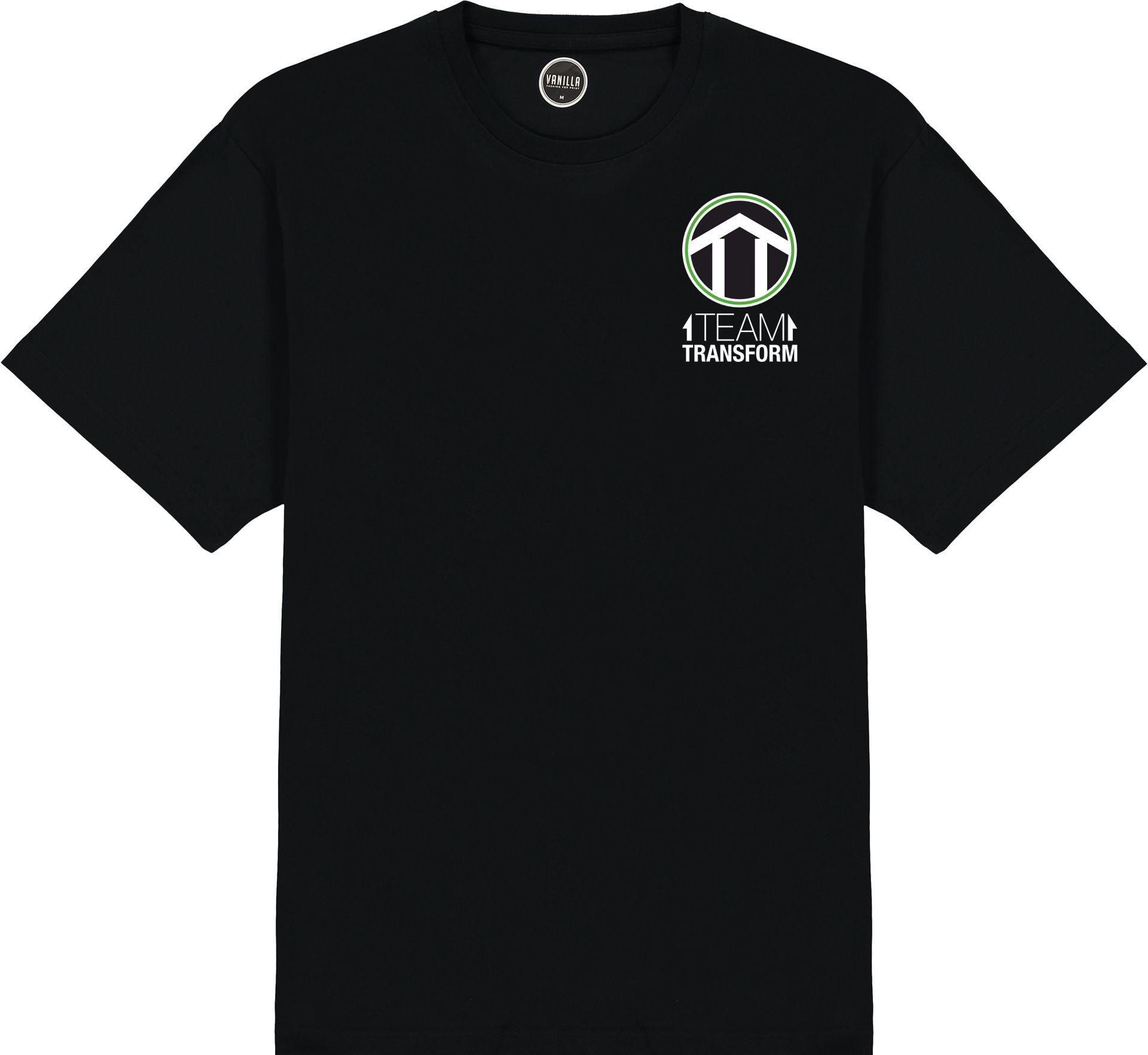Team Transform fashionable oversized unisex styling tee in black with Team Transform logo printed onto the left chest and print on the back.