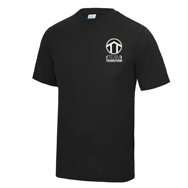 Team Transform sports t-shirt in black with Team Transform logo printed onto the left chest and print on the back.