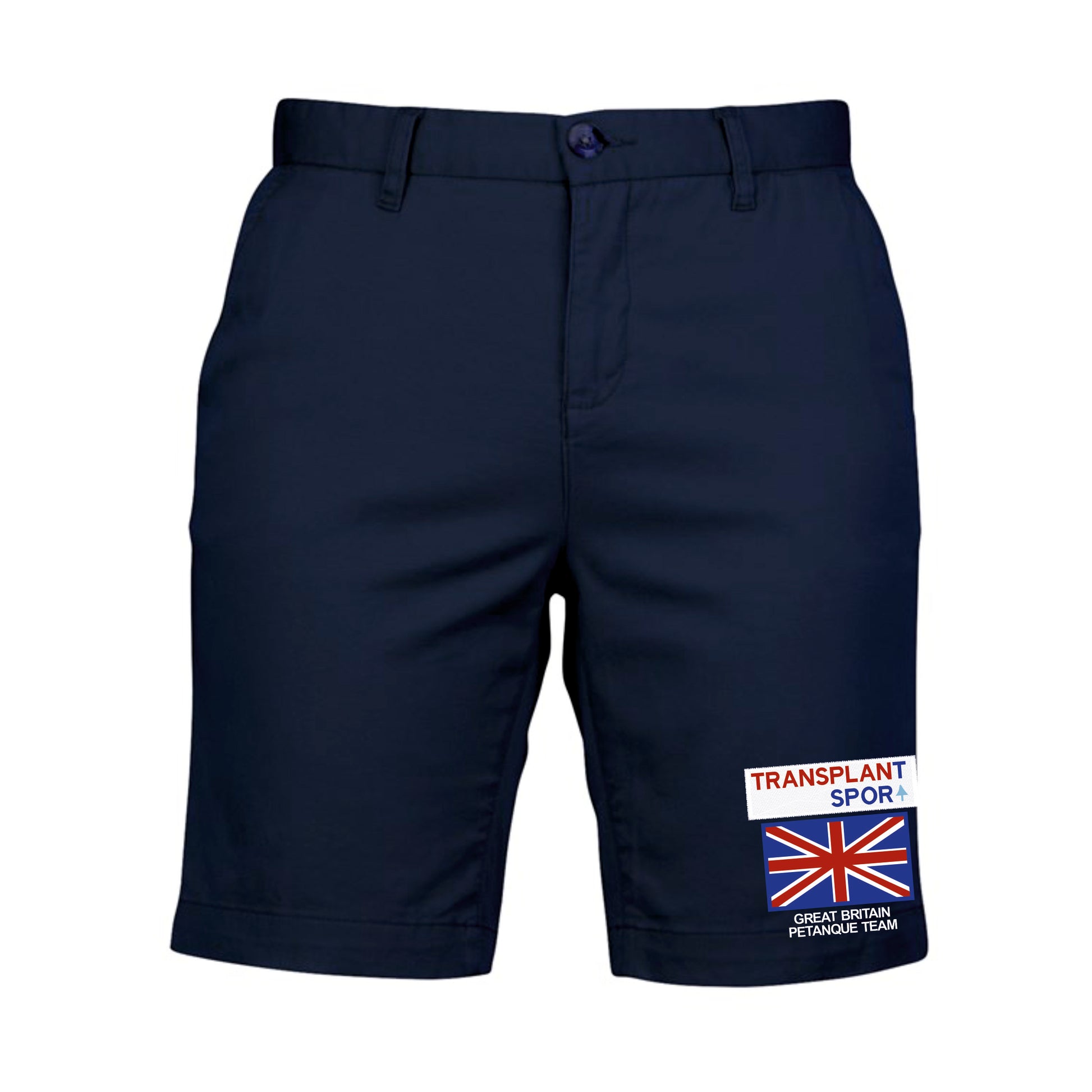 These flat front chino shorts are made with quality cotton-rich stretch twill, and are garment washed for a comfortable finish. Constructed with a YKK zip fly and buttoned waistband. It also comes with the Transplant Sport Team logo embroidered on to the leg.