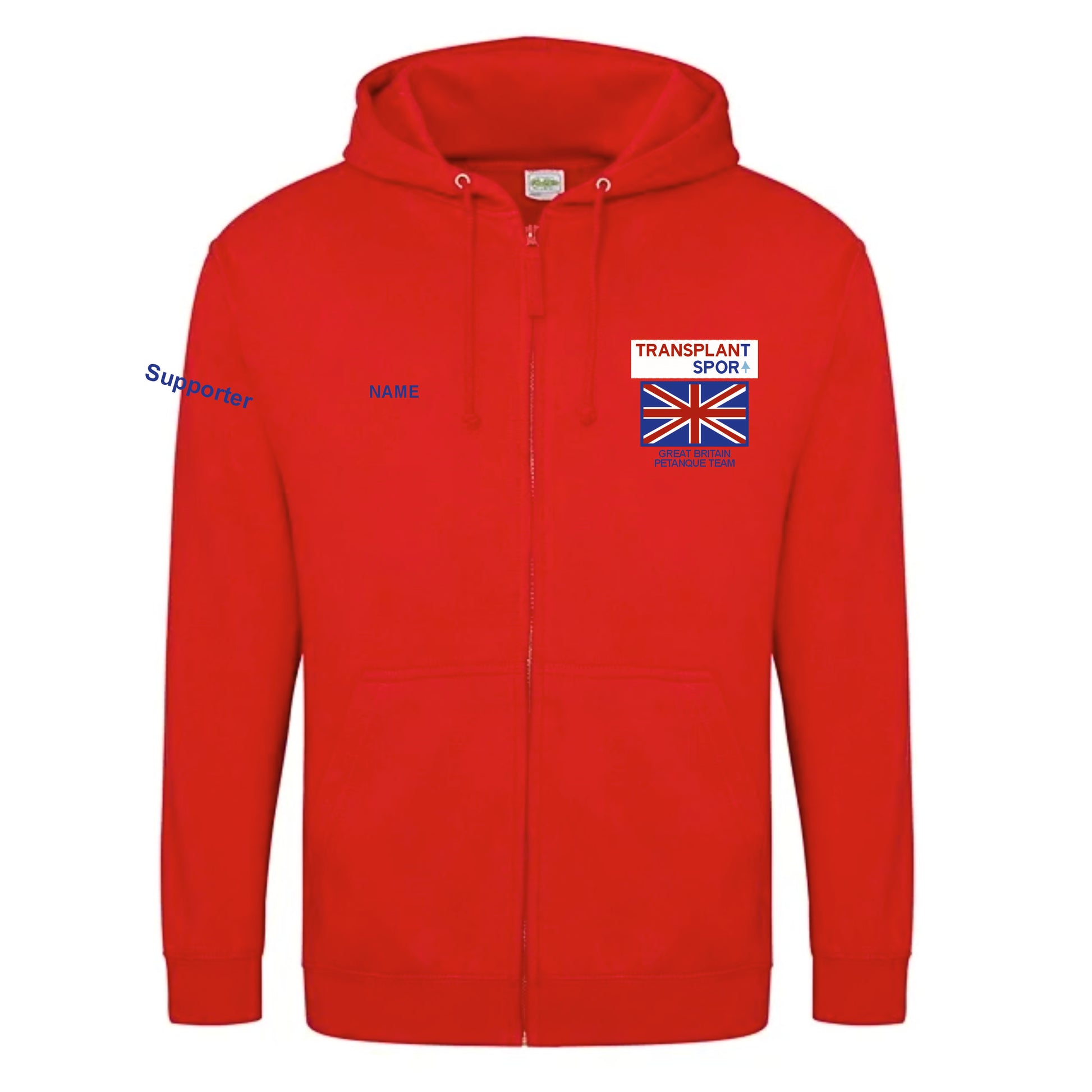 Adults Zoodie comes with the Transplant Sport Team embroidered on the left breast.
